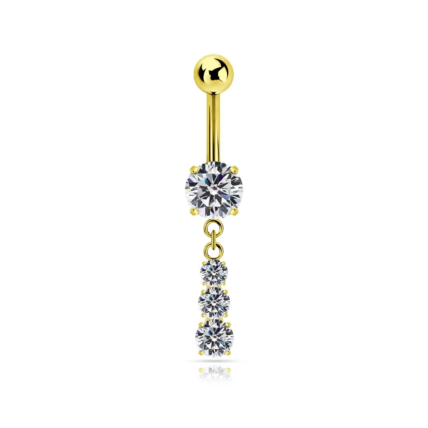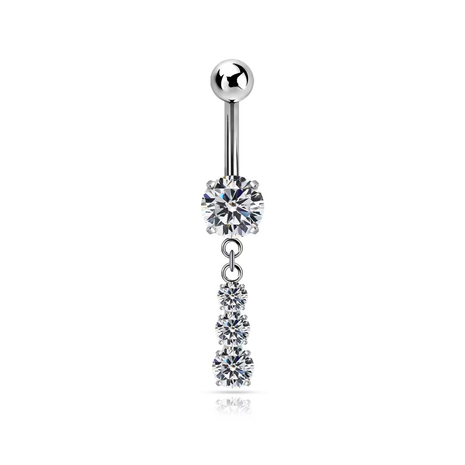 Mått: 1,6 mm (14G) | Längd: 10 mm | Kula: 5 mm | Övre sten: 7 mm CZ | Hänge: 3 mm, 4 mm & 5 mm CZ